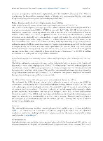 randomized control trials studying RAMIE were excluded. Additional information on active clinical trials