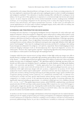 surgical treatments. AI has been applied to diagnostic upper endoscopies in aiding endoscopists in early