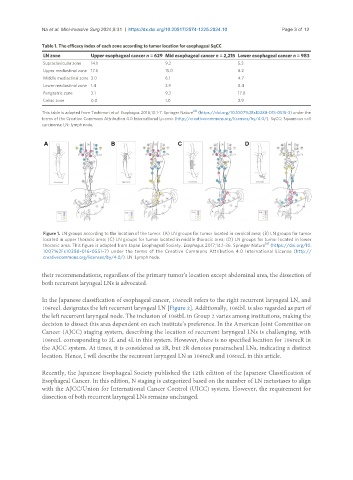 located in upper thoracic area; (C) LN groups for tumor located in middle thoracic area; (D) LN groups for tumor located in lower