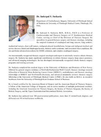 surgery, Dr. Sarkaria has made significant contributions in robotic thoracic surgery, lung cancer genomics,