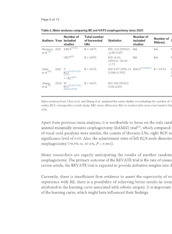 Table 2. Meta-analyses comparing RE and VATS esophagectomy since 2021