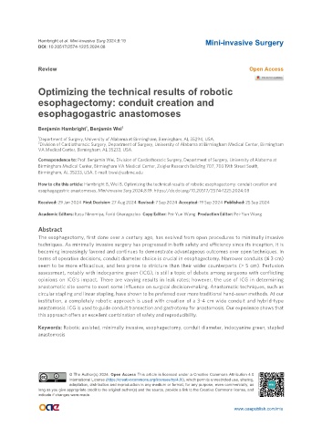 How to cite this article: Hambright B, Wei B. Optimizing the technical results of robotic esophagectomy: conduit creation and