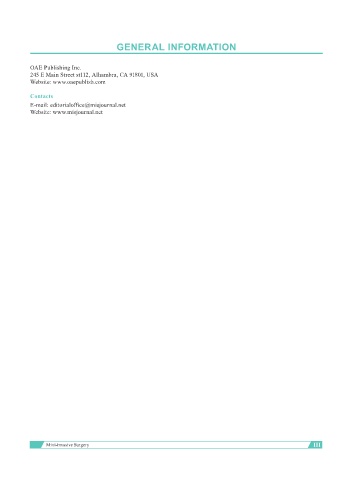 GENERAL INFORMATION OAE Publishing Inc. 245 E Main Street st112, Alhambra, CA 91801, USA Website: www.oaepublish.com Contacts E-mail: editorialoffice@misjournal.net Website: www.misjournal.net Mini-invasive Surgery III