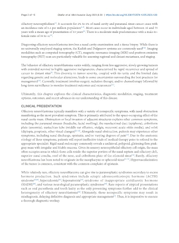 heterogeneity of olfactory neuroblastoma . Ultimately, these nonspecific symptoms may result in