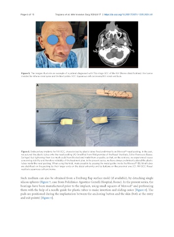 we sutured the plastic tubes onto the nasal packing (A) (modified from Malignancies of the Nasal Vestibule. Editor Francesco Bussu.