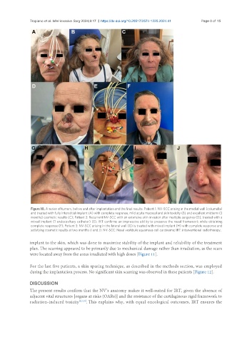 complete response (F); Patient 3: NV-SCC arising in the lateral wall (G) is treated with mixed implant (H) with complete response and