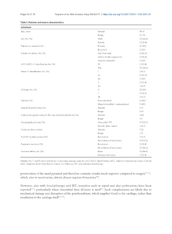 Subsite of primary, No. (%) Ala/limen nasi 8 (53.4)