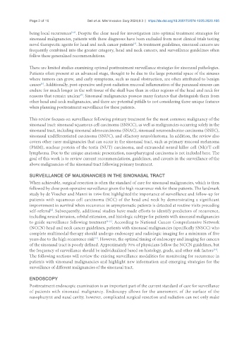 surveillance of different malignancies of the sinonasal tract.