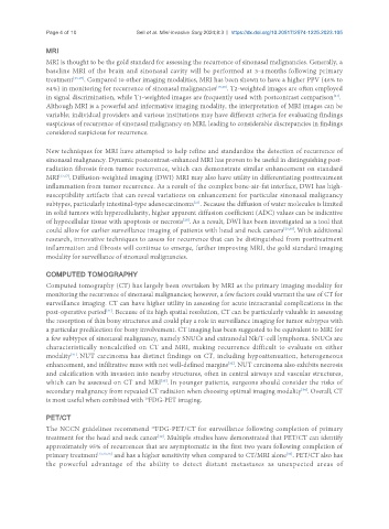 84%) in monitoring for recurrence of sinonasal malignancies [15,26] . T2-weighted images are often employed