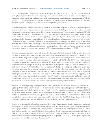 GERD development. Conversely, studies that report a decrease in GERD after SG suggest various