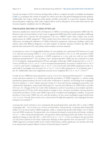 2010 reported preexisting GERD in 44.5% of patients scheduled for SG, 84.1% with persistent GERD