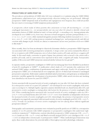 esophageal manometry (n = 30) preoperatively and one year after SG aimed to identify clinical and