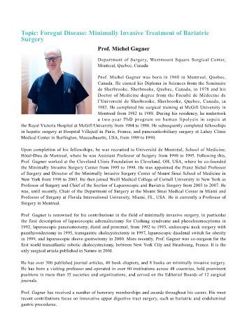 in 1999, and laparoscopic sleeve gastrectomy in 2000. More recently, Prof. Gagner was co-surgeon for the