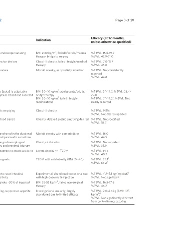 • Fluid-filled IGBs: Orbera balloon system, Orbera 365 balloon, Saline-filled balloons placed endoscopically; Spatz3 is adjustable BMI 30-40 kg/m ; adolescents/adults; %TBWL: 3.1-14.7; %EWL: 25.4-