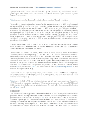 detail, we performed 78 laparoscopic SADI-Ss (49.7%), 34 robot-assisted SADI-Ss (21.6%), 44 laparoscopic