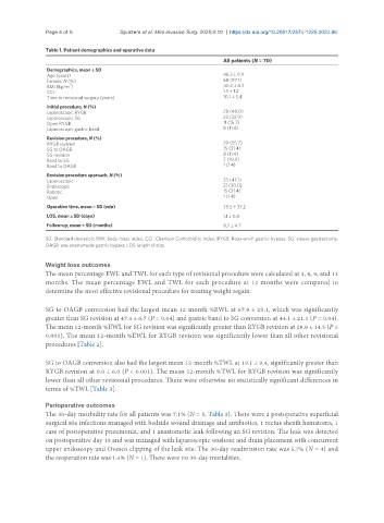 The mean percentage EWL and TWL for each type of revisional procedure were calculated at 3, 6, 9, and 12