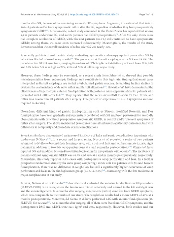 months after SG, because of the remaining severe GERD symptoms. In general, it is estimated that 10% to