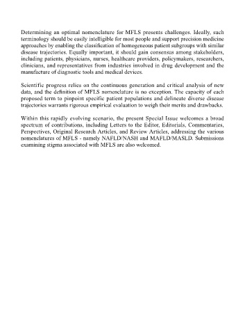 nomenclatures of MFLS - namely NAFLD/NASH and MAFLD/MASLD. Submissions