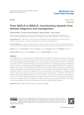 How to cite this article: Iruzubieta P, Jimenez-Gonzalez C, Cabezas J, Crespo J. From NAFLD to MASLD: transforming steatotic