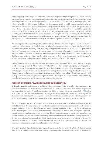 behavioral health provider on a surgical team, providers should ideally be highly trans competent and have a
