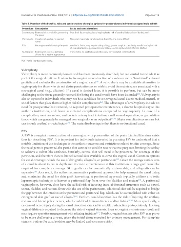 PSV Neovagina while keeping the penis Aesthetic limits; may require skin grafting; greater surgical complexity results in a higher risk