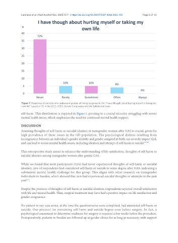 Figure 7. Responses of patients who underwent gender-affirming surgeries to the “I have thought about hurting myself or taking my