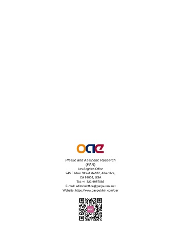 Plastic and Aesthetic Research (PAR) Los Angeles Office 245 E Main Street ste107, Alhambra, CA 91801, USA Tel: +1 323 9987086 E-mail: editorialoffice@parjournal.net Website: https://www.oaepublish.com/par