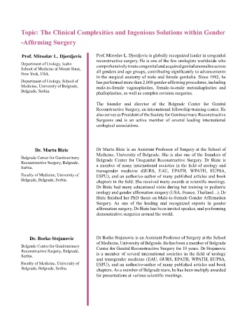 affirmation surgery, Dr Bizic has been invited speaker, and performing