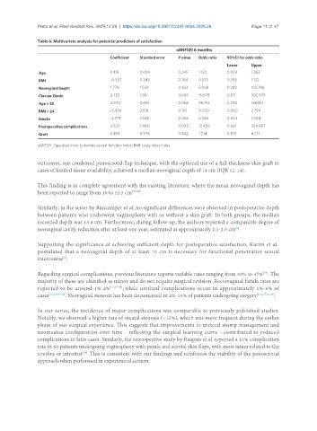 Neovaginal length 1.776 1.552 0.253 5.908 0.282 123.798