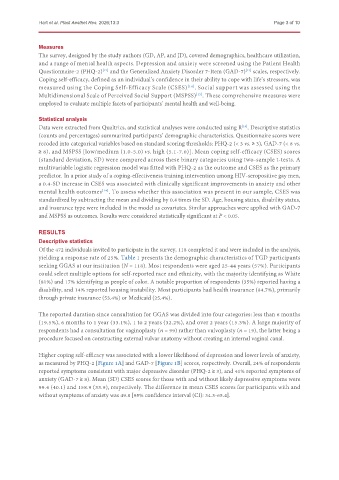 and insurance type were included in the model as covariates. Similar approaches were applied with GAD-7