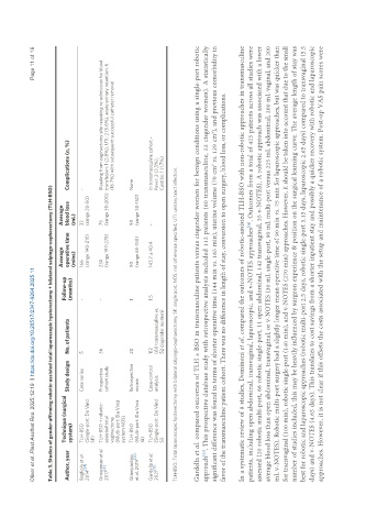 number of studies included, this may be heavily influenced by surgeon experience & position on the surgical learning curve. The average length of stay was