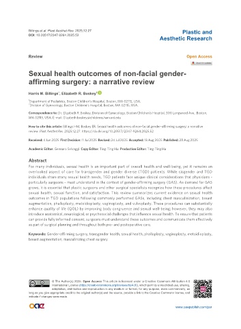 How to cite this article: Billings HM, Boskey ER. Sexual health outcomes of non-facial gender-affirming surgery: a narrative