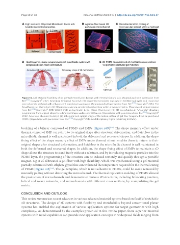 Figure 10. (A) Material flexibility of 3D printed microfluidic devices with minimal feature size. (Reproduced with permission from