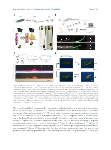 panels show the actuation of LCE/CNT using infrared light. Scale bars, 1 cm. Reproduced with permission [92] by CC-YB; (B) LCE-based