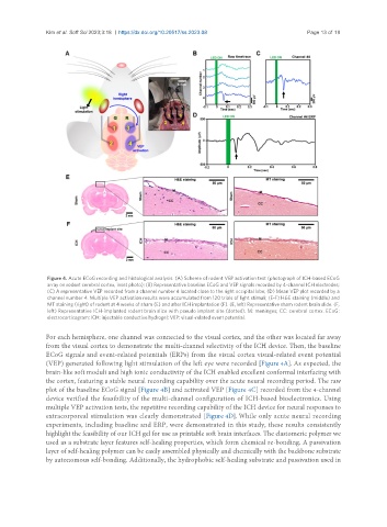 Figure 4. Acute ECoG recording and histological analysis. (A) Scheme of rodent VEP activation test (photograph of ICH-based ECoG