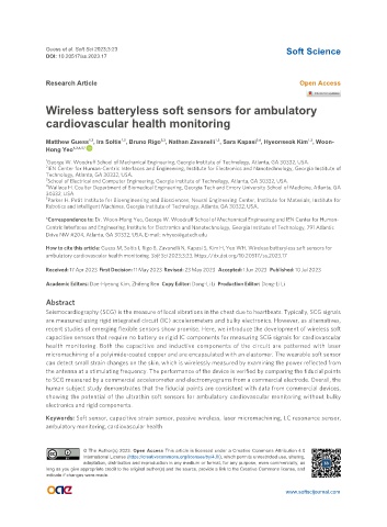 How to cite this article: Guess M, Soltis I, Rigo B, Zavanelli N, Kapasi S, Kim H, Yeo WH. Wireless batteryless soft sensors for