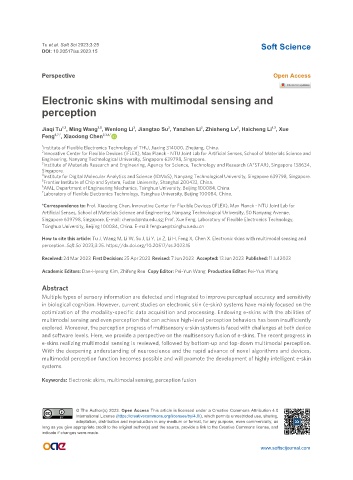 How to cite this article: Tu J, Wang M, Li W, Su J, Li Y, Lv Z, Li H, Feng X, Chen X. Electronic skins with multimodal sensing and