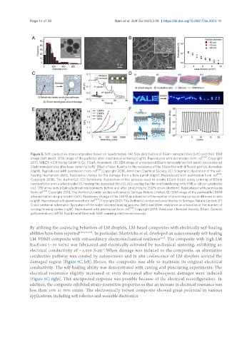 Figure 5. Soft conductive nanocomposites based on liquid metals. (A) Size distribution of EGaIn nanoparticles (left) and their TEM