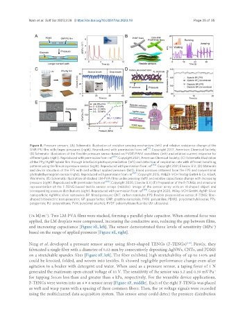 patterns using the film as a pressure sensor (right). Reproduced with permission from ref [183] . Copyright 2021, Elsevier B.V; (D) Materials