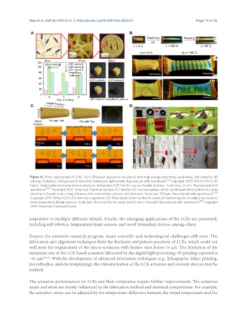 permission . Copyright 2021, American Chemical Society; (C) tubular LCE microactuators, which could exert photocontrol of a wide