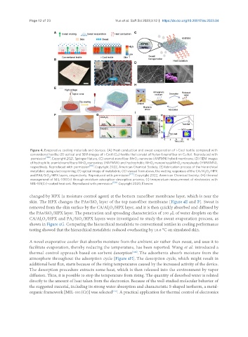Figure 4. Evaporative cooling materials and devices. (A) Heat conduction and sweat evaporation of i-Cool textile compared with