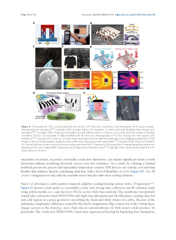 crystalline TE fiber (D) wearable TE fabric knitted with TE fibers and thermography of TE fiber cooling test. Reproduced with