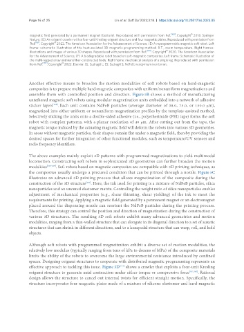 modalities [155-159] . Soft robots based on magnetic composites are compatible with 3D printing techniques, as