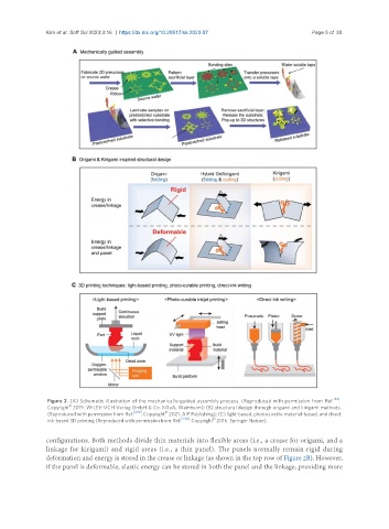 Copyright 2019. WILEY-VCH Verlag GmbH & Co. KGaA, Weinheim); (B) structural design through origami and kirigami methods.