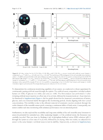 films tested with Sample 1; (C) Δλ values for the CLCN-IPN , CLCN-IPN , and CLCN-IPN sensors tested with artificial sweat