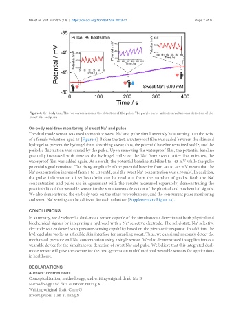 The dual mode sensor was used to monitor sweat Na and pulse simultaneously by attaching it to the wrist