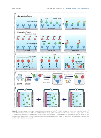 competitive format and sandwich format; (B) An electrochemical aptamer-based sensor blinds and releases a target molecule; (C)