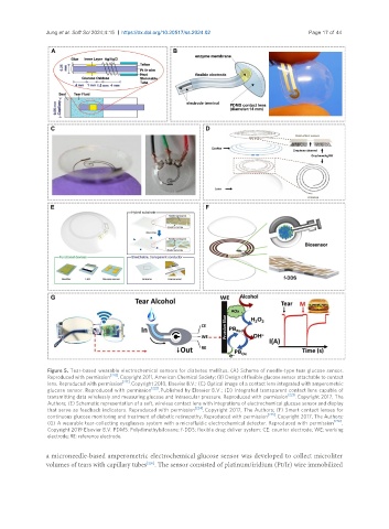 (G) A wearable tear-collecting eyeglasses system with a microfluidic electrochemical detector. Reproduced with permission [226] .