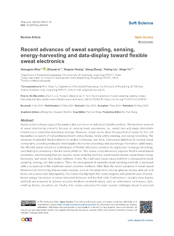 How to cite this article: Zhao G, Li Z, Huang X, Zhang Q, Liu Y, Yu X. Recent advances of sweat sampling, sensing, energy-