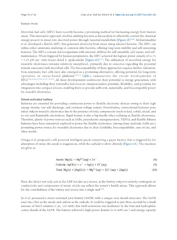 et al. developed a flexible MFC that generates electricity from sweat using selected bacteria. The MFC can